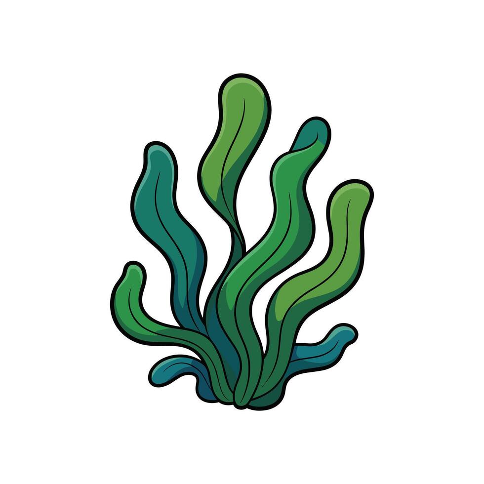 An artistic, cartoon-style seaweed cluster stands out against a stark white backdrop. The green algae adds a touch of underwater beauty, creating a whimsical charm. vector