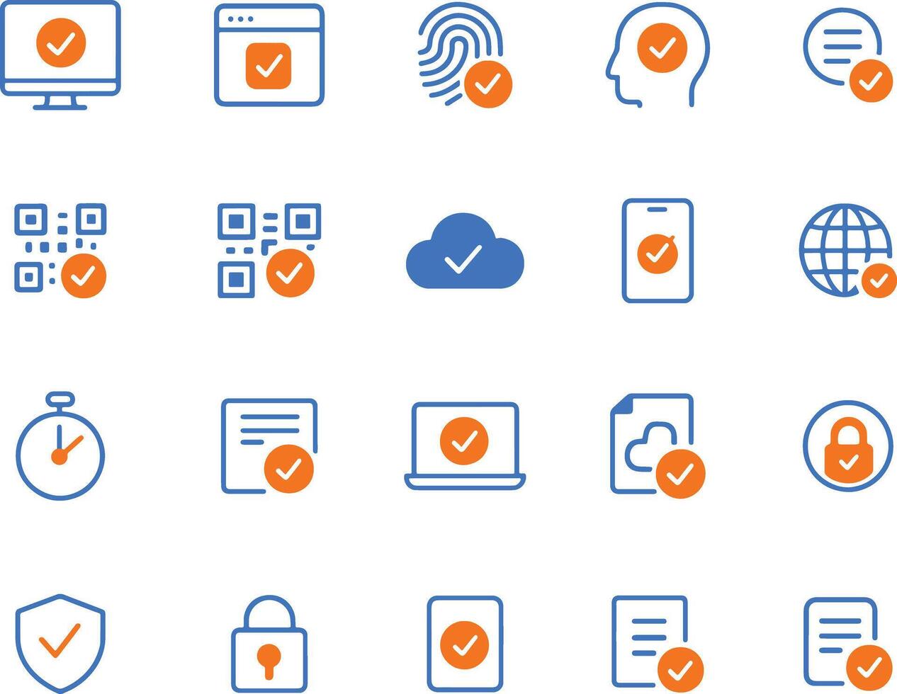 Set of verification icons for digital security, data privacy, and online processes on white background Pro Vector