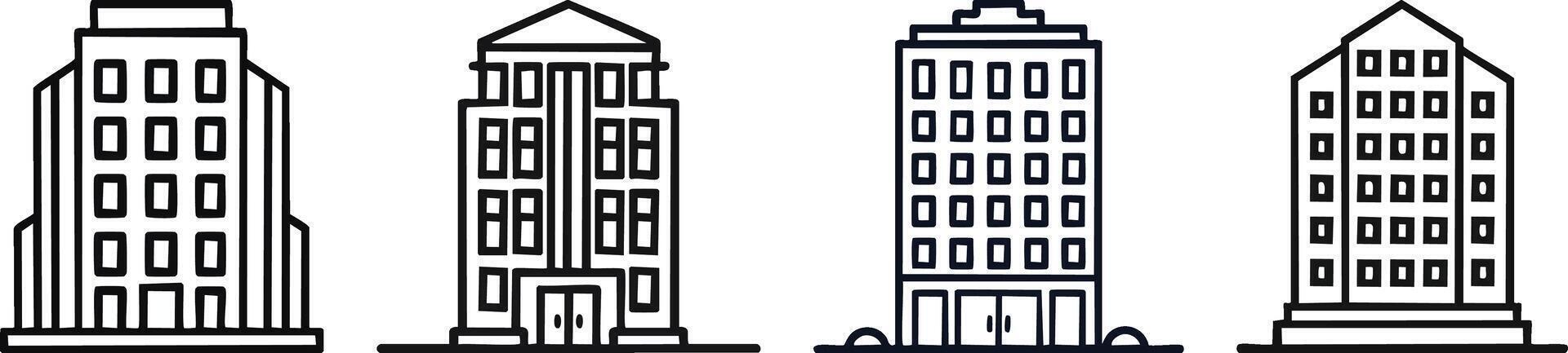 Apartment building icon with bold outline vertical window shapes creating clean modern symmetry for urban design concepts Pro Vector