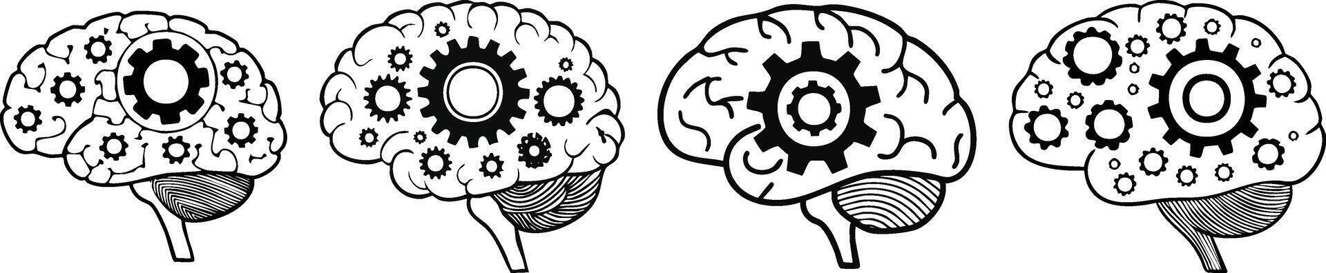 Human brain with gear line icon illustrating smart thinking cognitive processes and innovative creative problem solving concepts Pro Vector