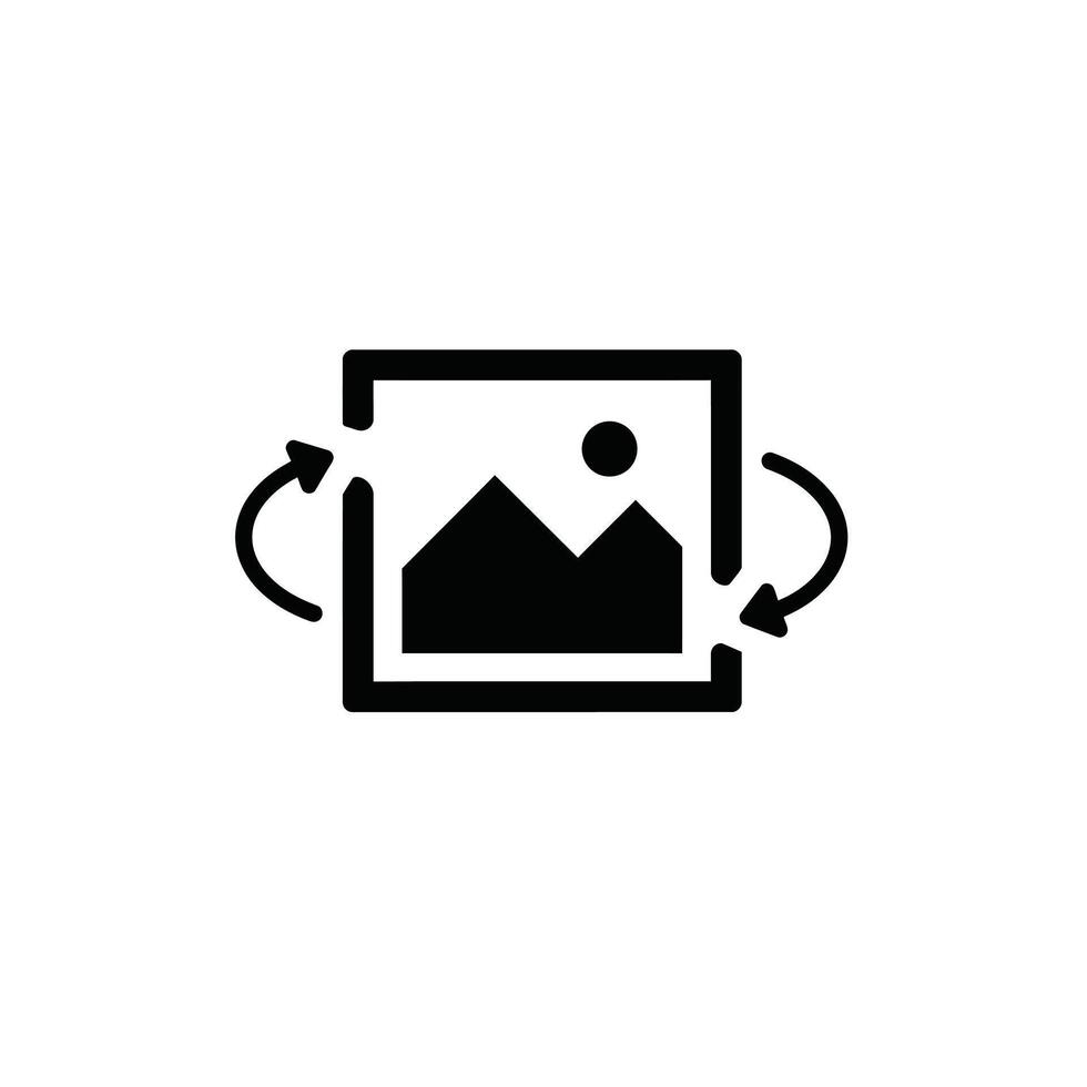 Black silhouette of a tilted square with curved rotation arrows symbolizing image transformation Pro Vector