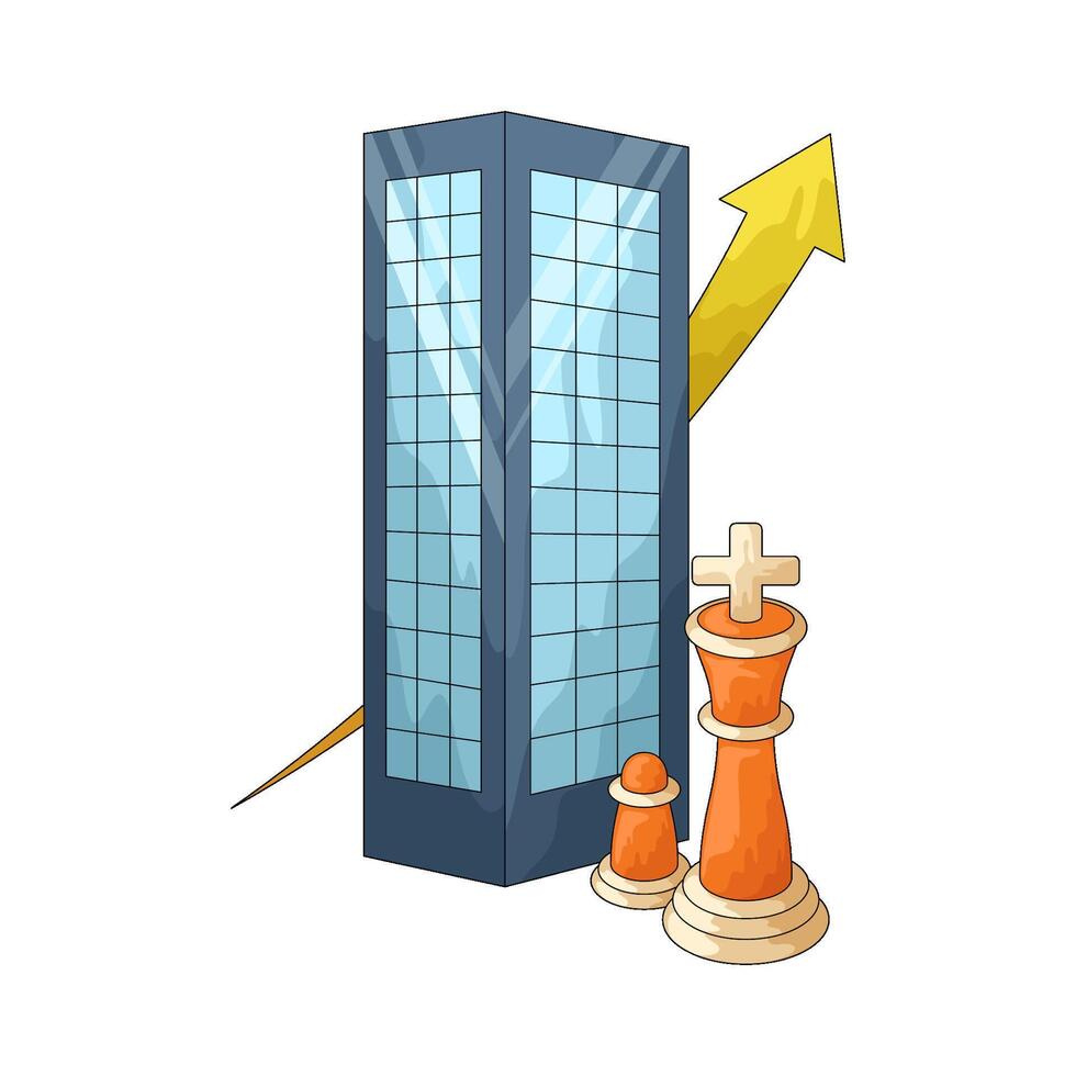 Building with Chess Pieces and Arrow Pro Vector