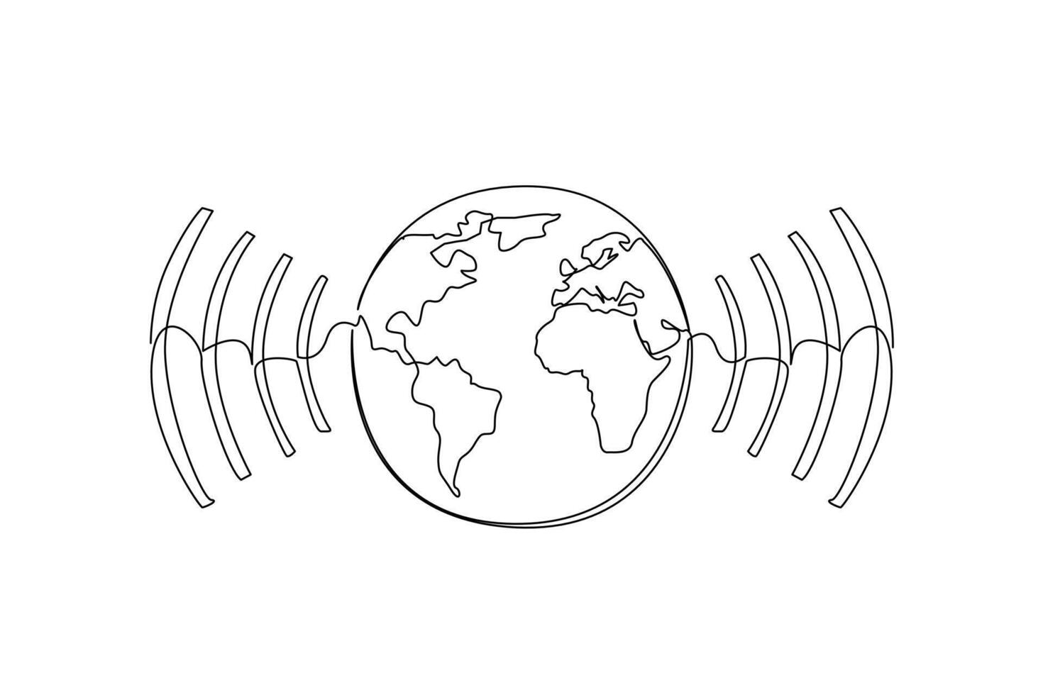 Single one line drawing globe with signal waves on both sides. Symbolization of ease of communication. World Telecommunication and Information Society Day. Continuous line design illustration Pro Vector