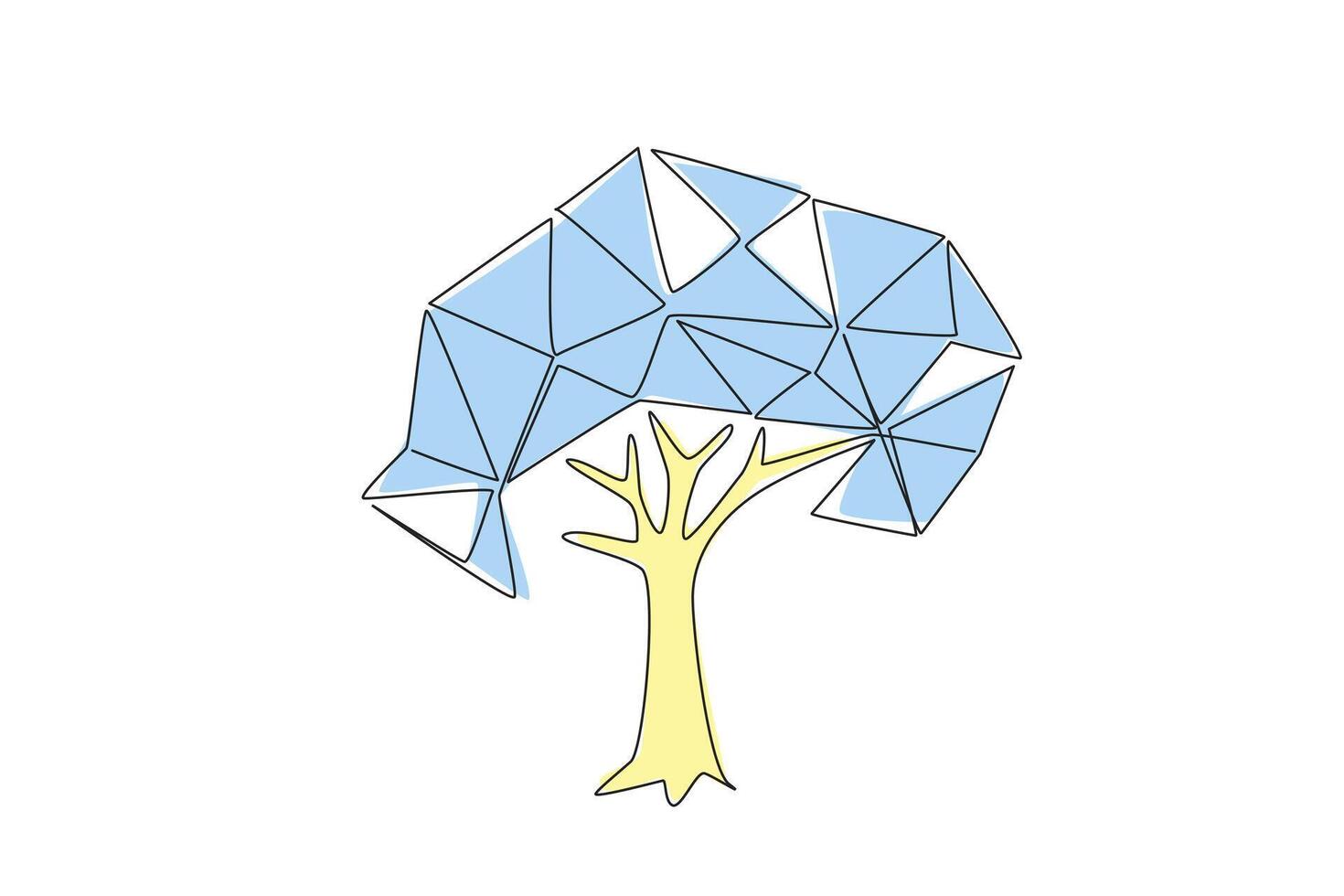 Single continuous line drawing tree with leaves made of digital symbol connection lines. Environmentally friendly technology. Modern. For future. Tree Concept. One line design illustration Pro Vector