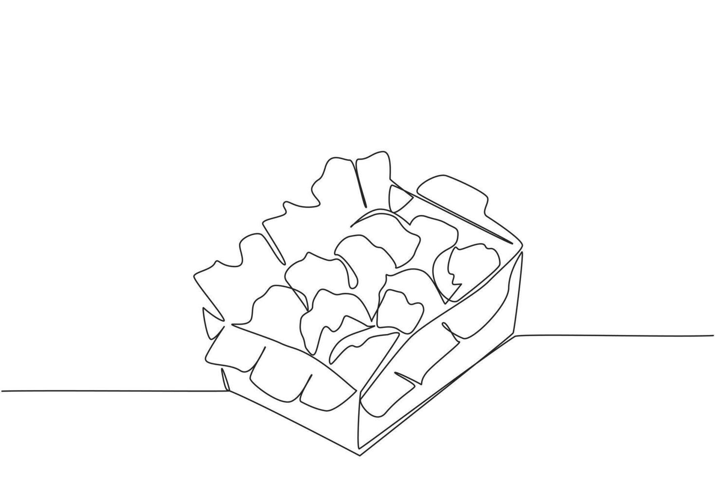 Single one line drawing stack of macaroons in a box with food paper. Order sweet snacks at the cafe and then take them home. Dessert. National Macaroon Day. Continuous line design illustration Pro Vector