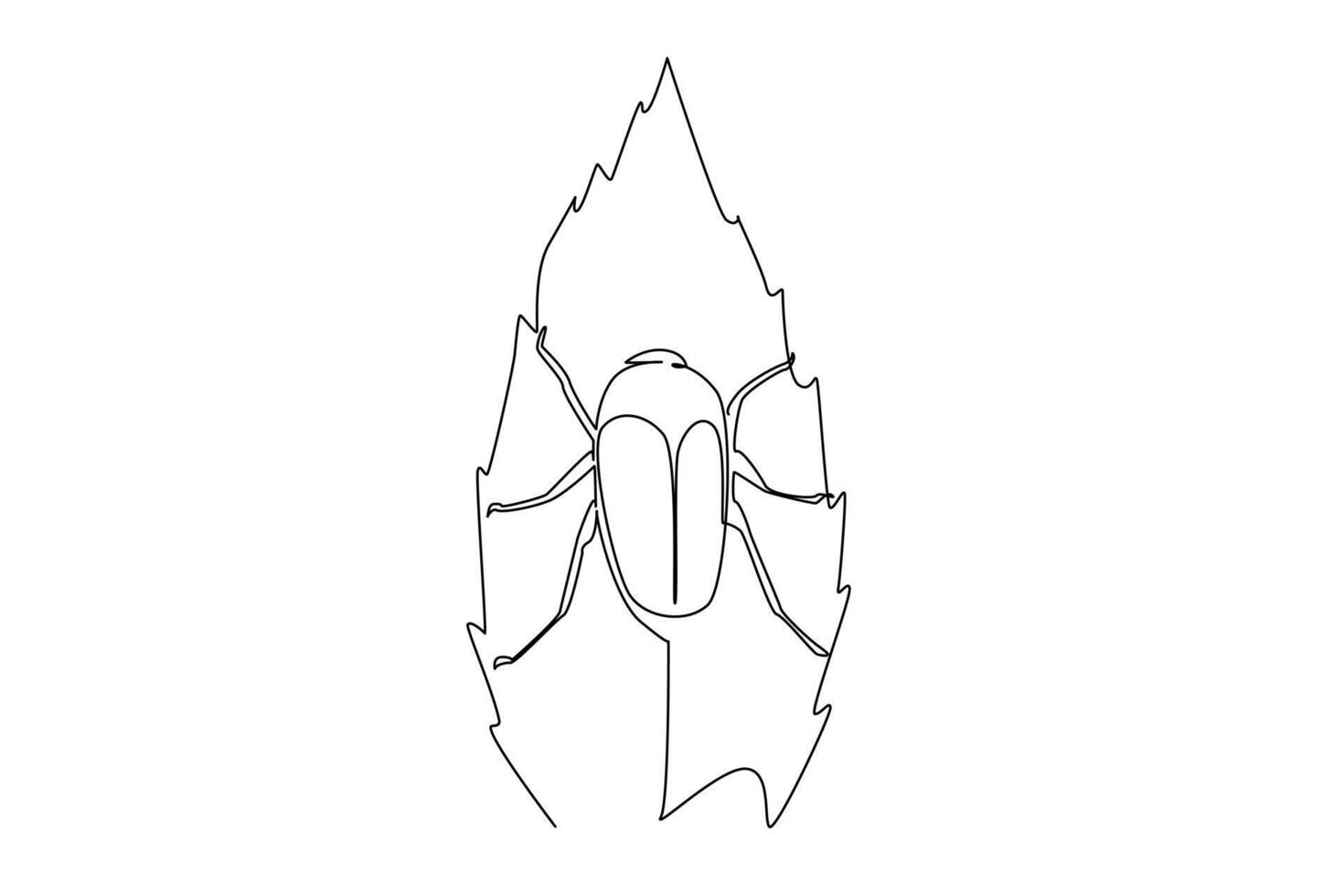Continuous line drawing of a june bug resting on a leaf, symbolizing nature concept and biodiversity for June Bug Day, highlighting insects role in ecosystems and environmental balance Pro Vector