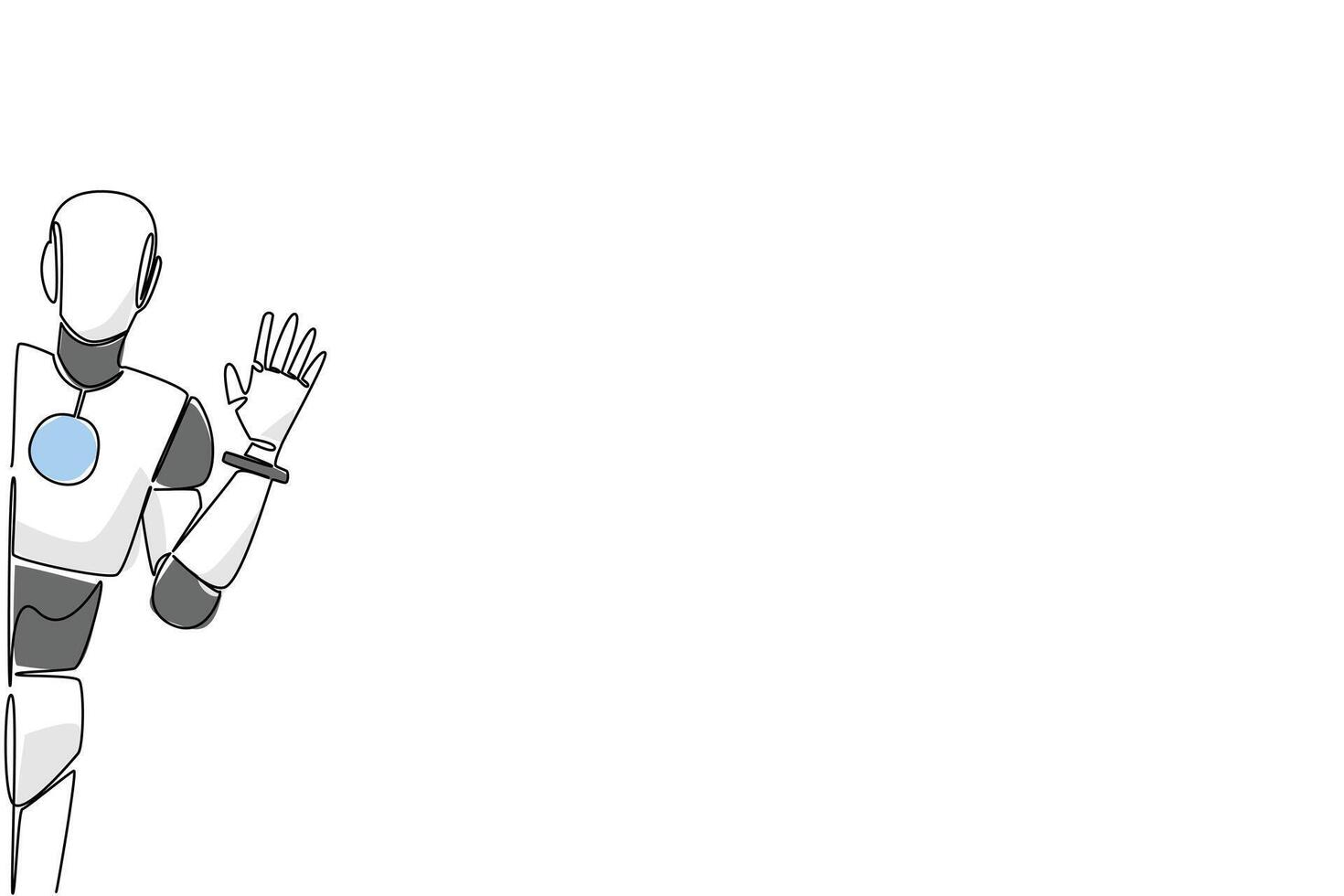 Single line drawing of a humanoid robot waving from the side of the wall, symbolizing technology, AI, and modern interaction in a futuristic business concept for Say Hi Day celebration. Pro Vector