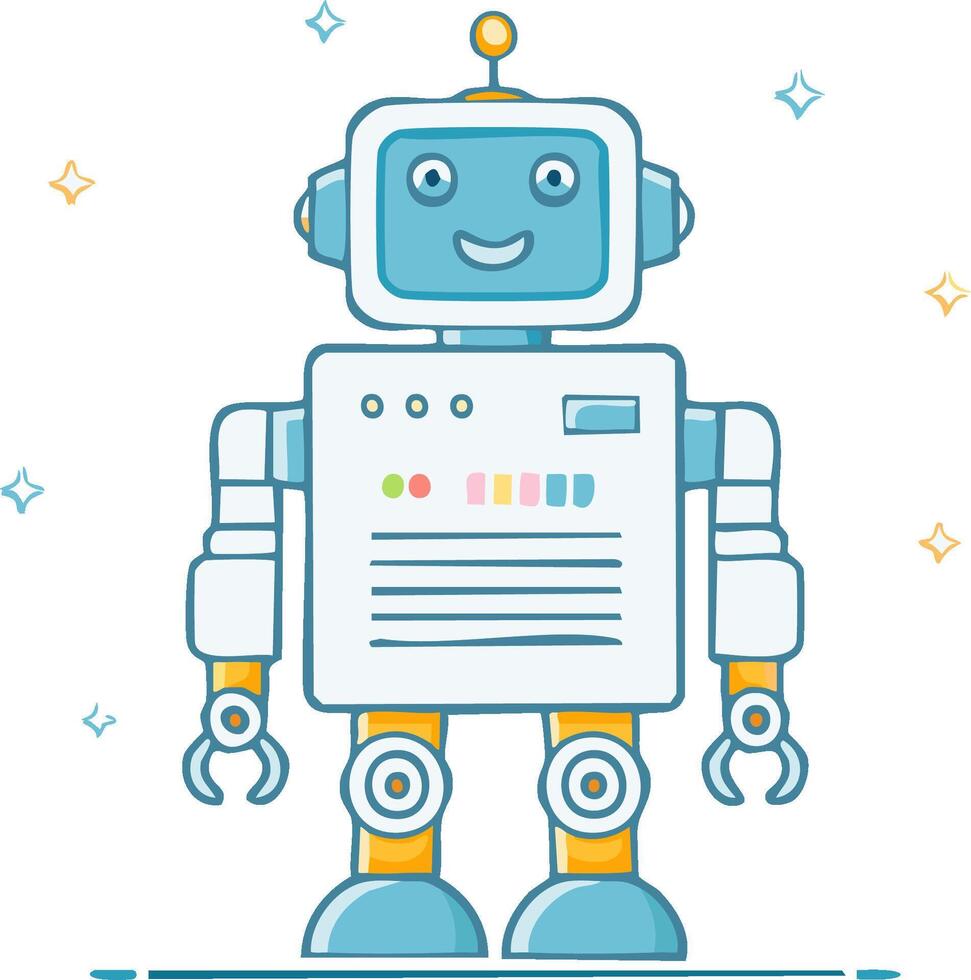 Friendly Cartoon Robot Standing Upright Technology Symbol Future Automation Innovation Intelligence Character Illustration Design Pro Vector