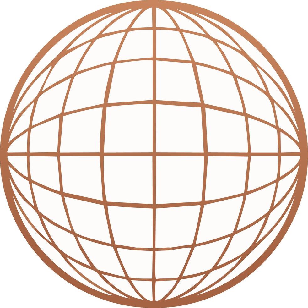 Minimalist World Globe Icon Copper Wireframe Earth Model Spherical Grid Structure Pro Vector