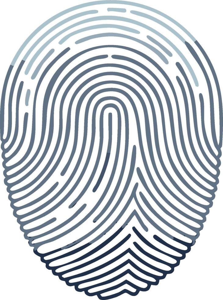 Digitally rendered fingerprint with a unique swirling pattern on white backdrop, identity verification, security and individual data concept Pro Vector