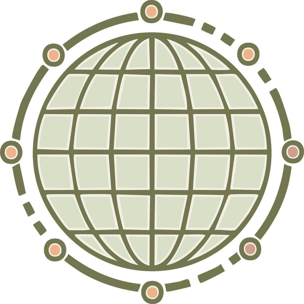 Globe with interconnected nodes representing global network, communication, or connections worldwide, simplified line art illustration Pro Vector