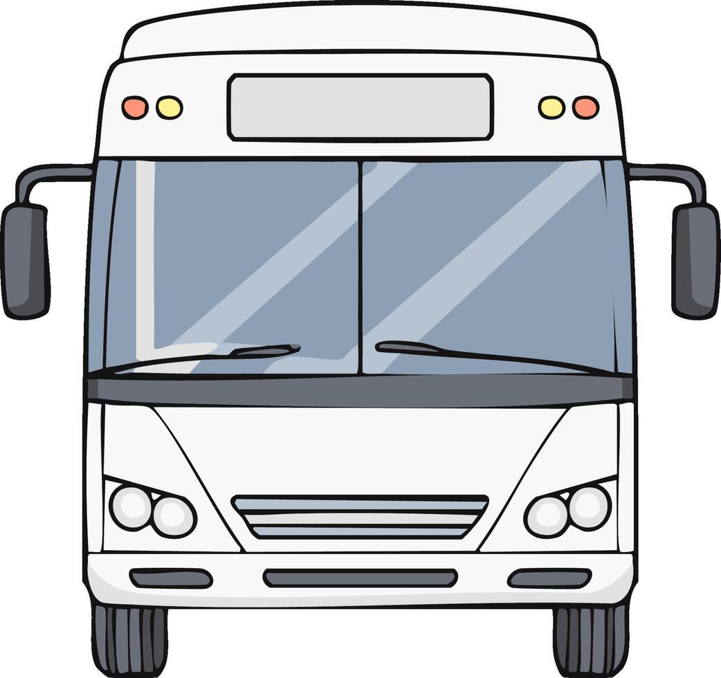 Front view illustration of a white bus with tinted windows and headlights on a white backdrop Pro Vector
