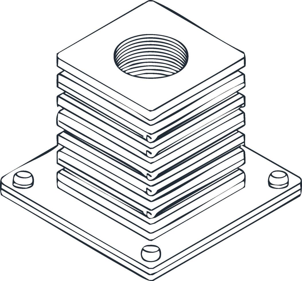 Architectural Isometric Sketch of Stacked Square Forms with Circular Opening for Technical Drawing Design Pro Vector
