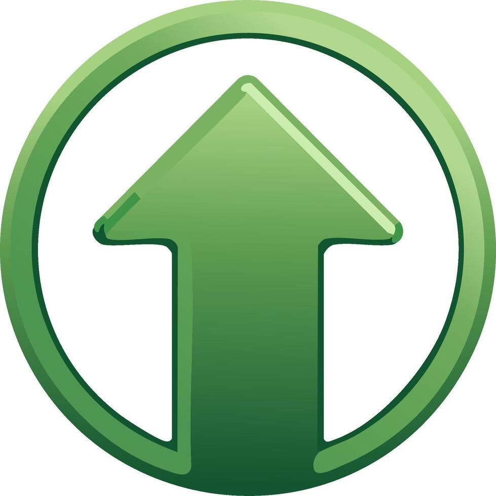 Green arrow pointing up inside a green circle symbolizes advancement, growth, and progress on white backdrop, navigation, direction icon Pro Vector
