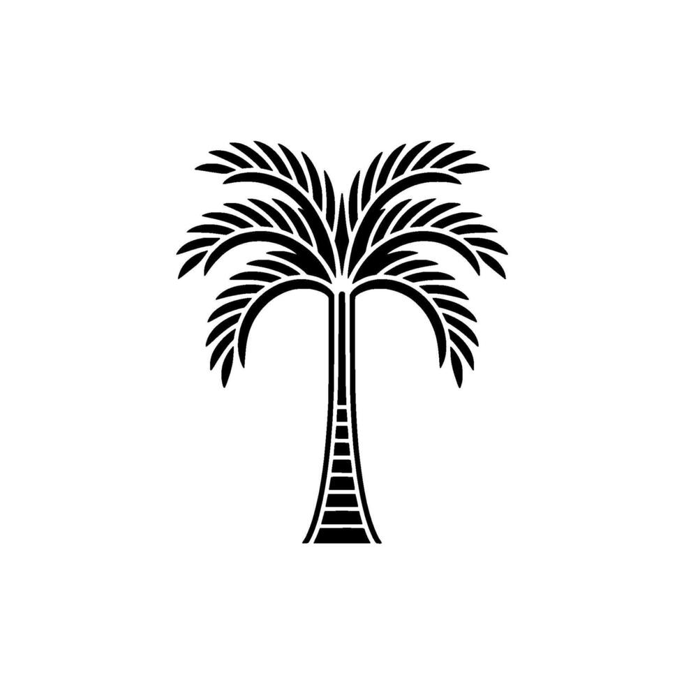 A clean and minimalist of a stylized palm tree silhouette with broad fronds and a segmented trunk Pro Vector