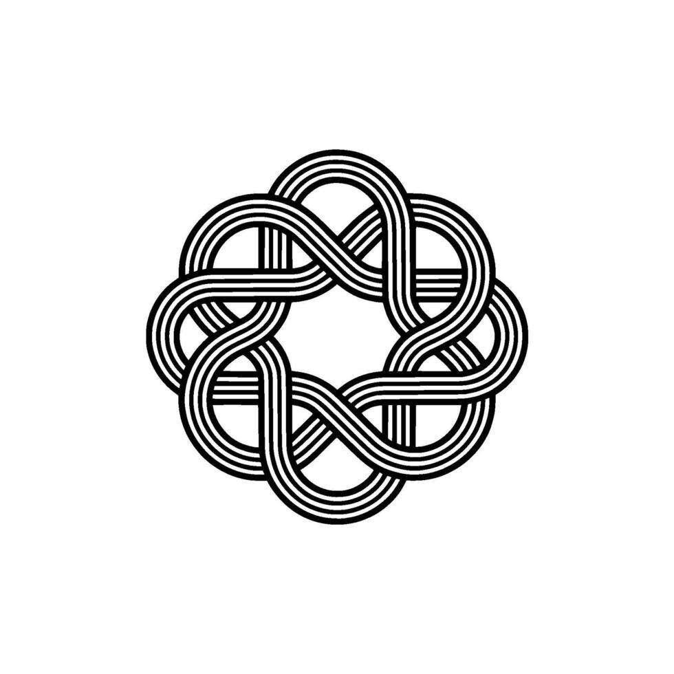 A striking geometric Celtic knot featuring interwoven triplelines forming a continuous circular pattern Pro Vector