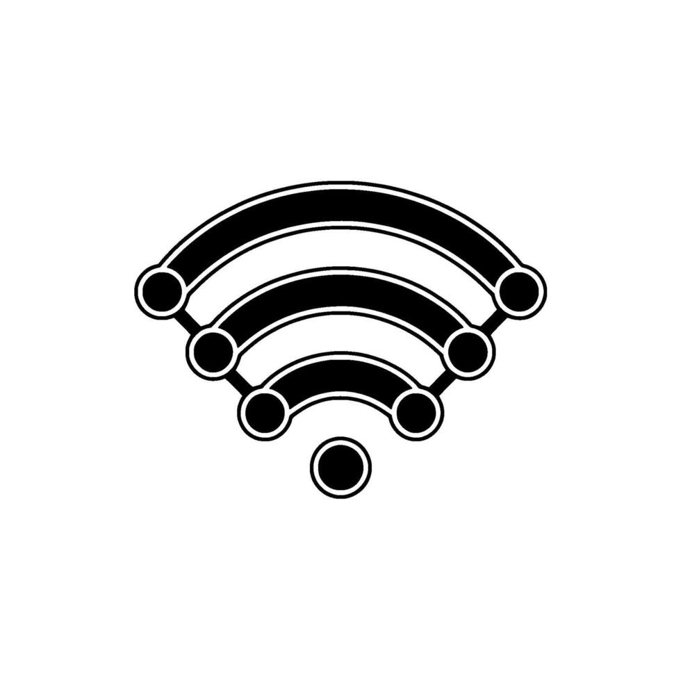 A clean minimalist illustration representing a simplified abstract wifi signal network composed of curved lines and interconnected circular nodes vector