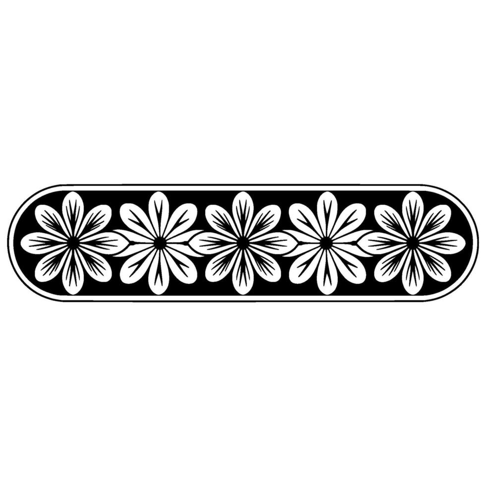 A minimalist featuring a repeating pattern of five stylized daisylike flowers within an elongated rounded rectangular border Pro Vector