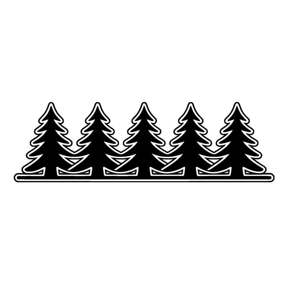A minimalist showcasing a horizontal line of five stylized pine trees with outlines Pro Vector