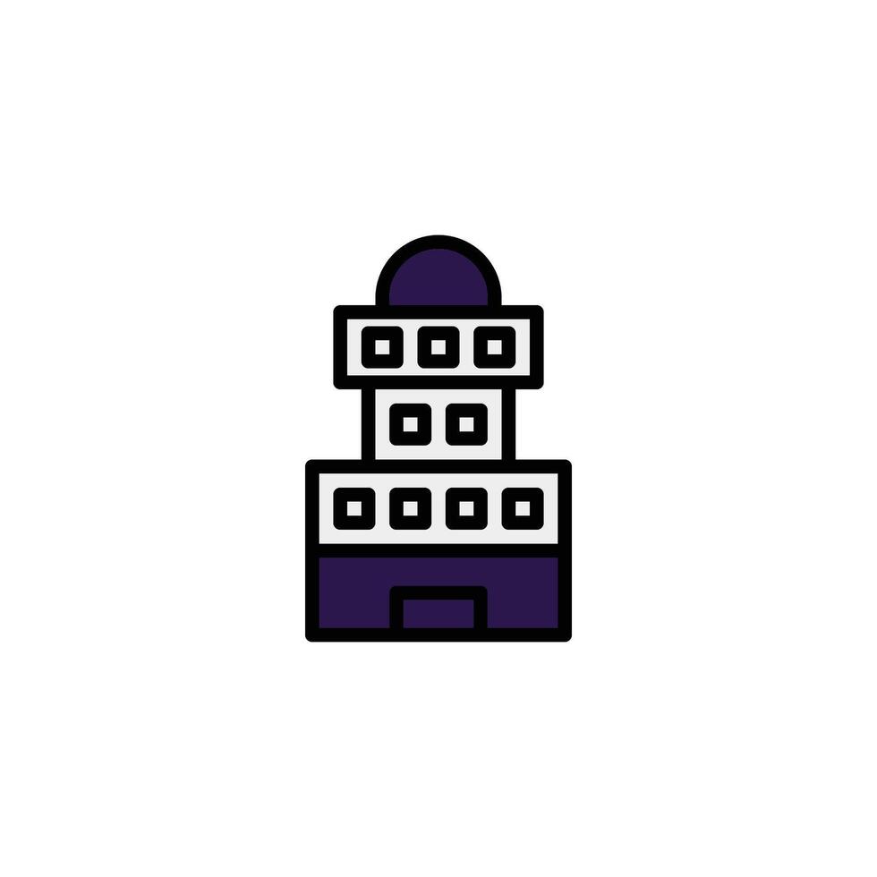 Abstract architectural elevation depiction showcases symmetrical three tiered structure with vector