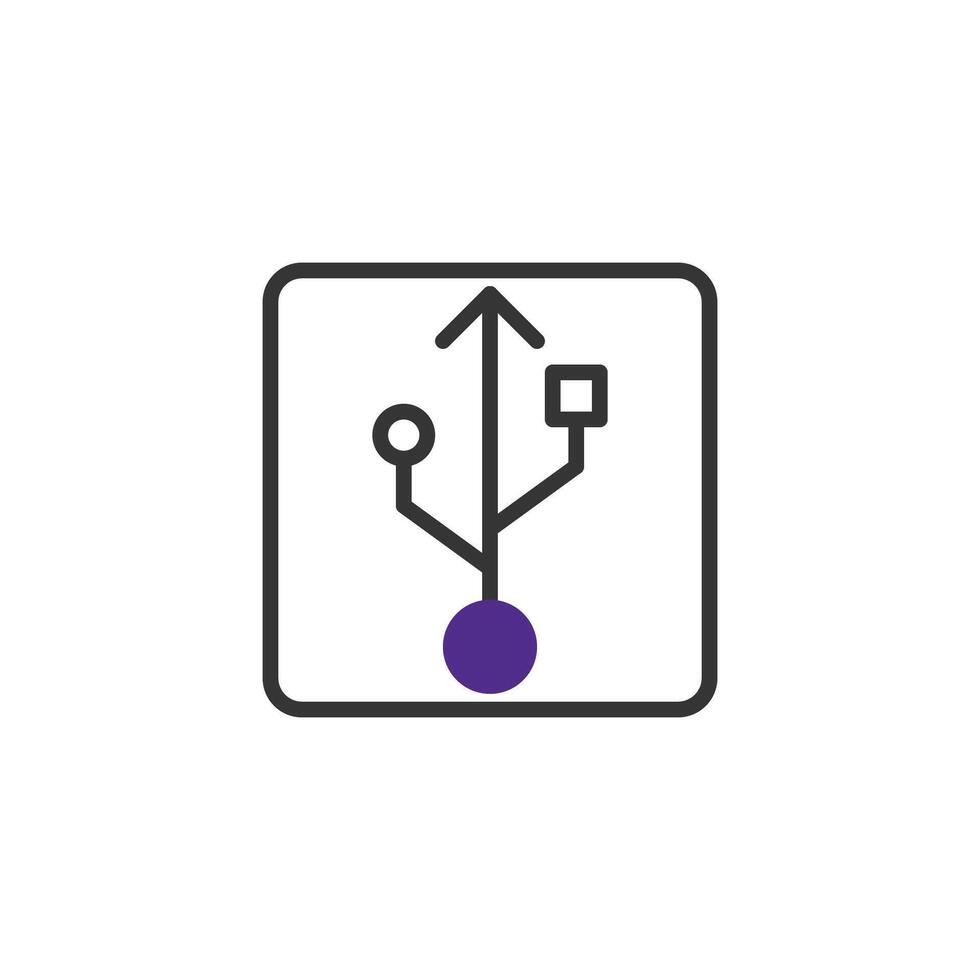 USB symbol in minimalistic style representing connectivity and technology solutions within a vector