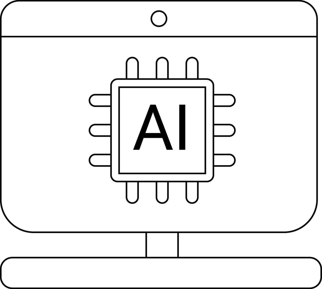 Minimalistic AI chip icon on computer monitor screen Pro Vector