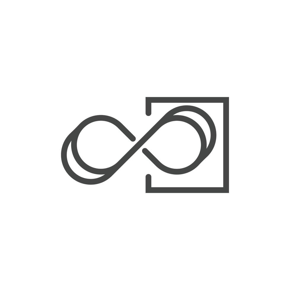 Abstract infinity loop symbol contained within a square geometric line art icon design element. Pro Vector