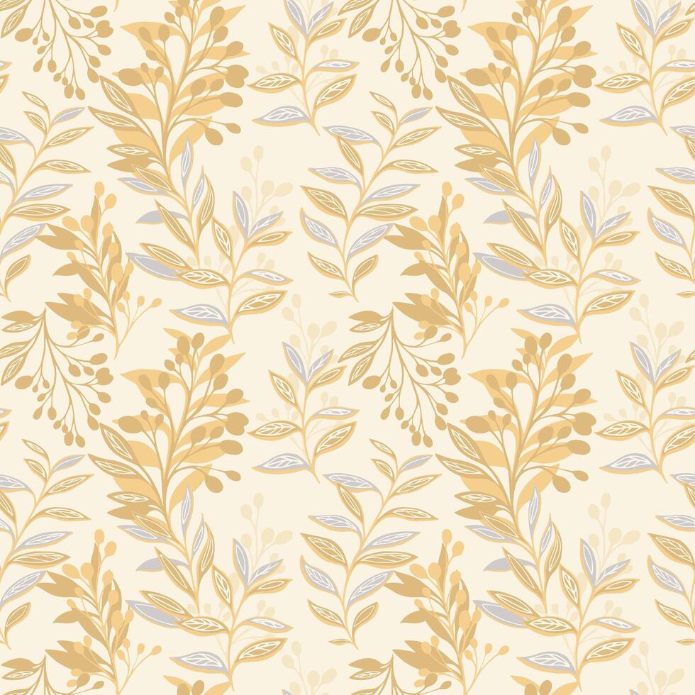 Elegant botanical pattern featuring stylized leafy branches and soft ornamental foliage in warm beige and muted tones, creating a delicate seamless natural background Pro Vector