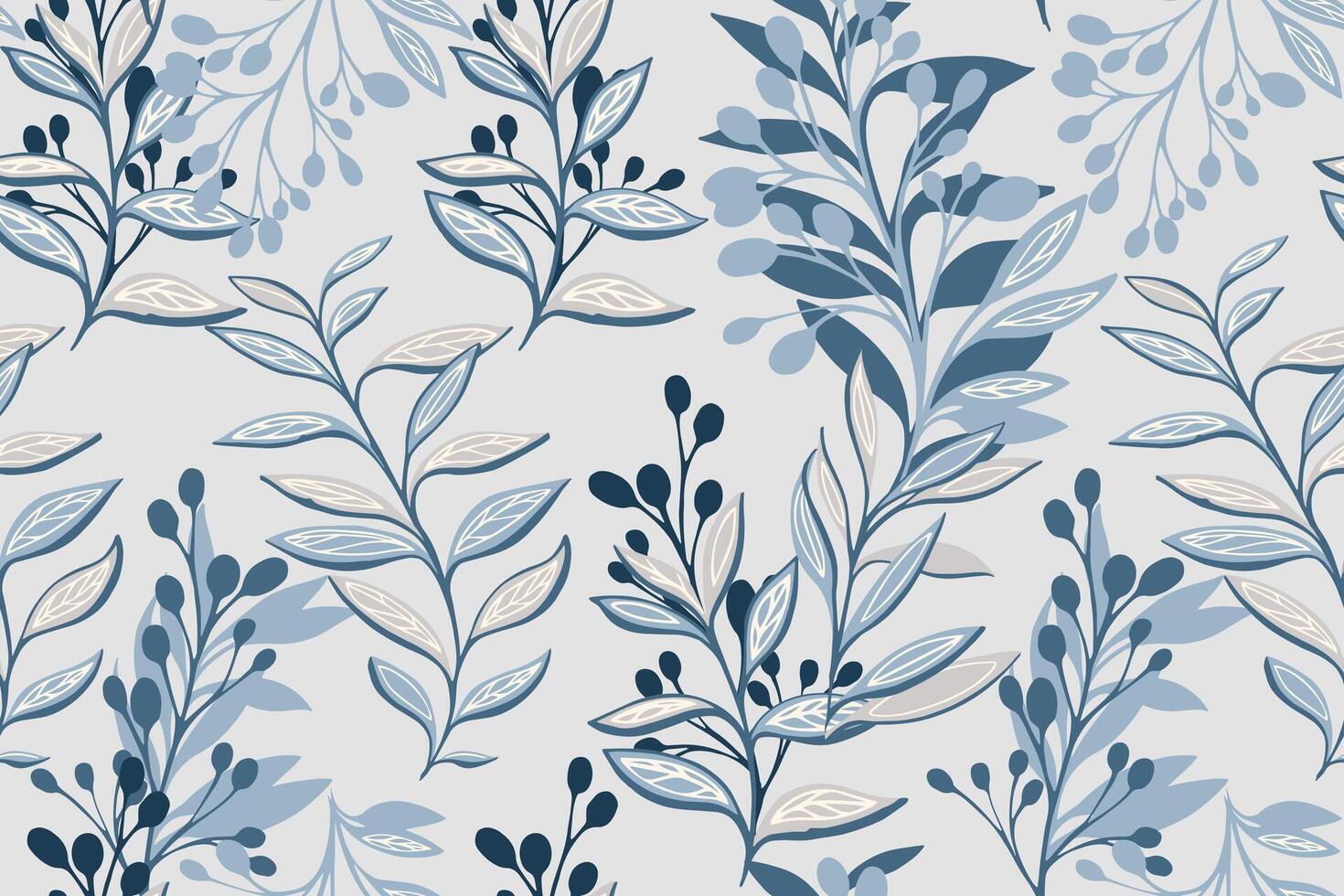 Elegant seamless pattern with stylized leafy branches and delicate berries in soft blue tones on a light background. Ideal for fabric, stationery, packaging, and modern decor Pro Vector