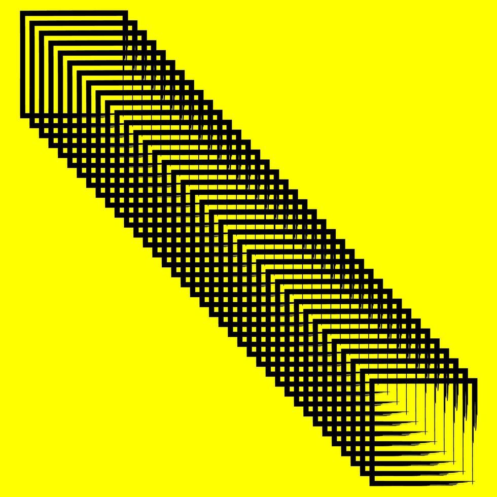 Repeating square . Diagonal black pattern. Optical line effect. Bright yellow background. Pro Vector