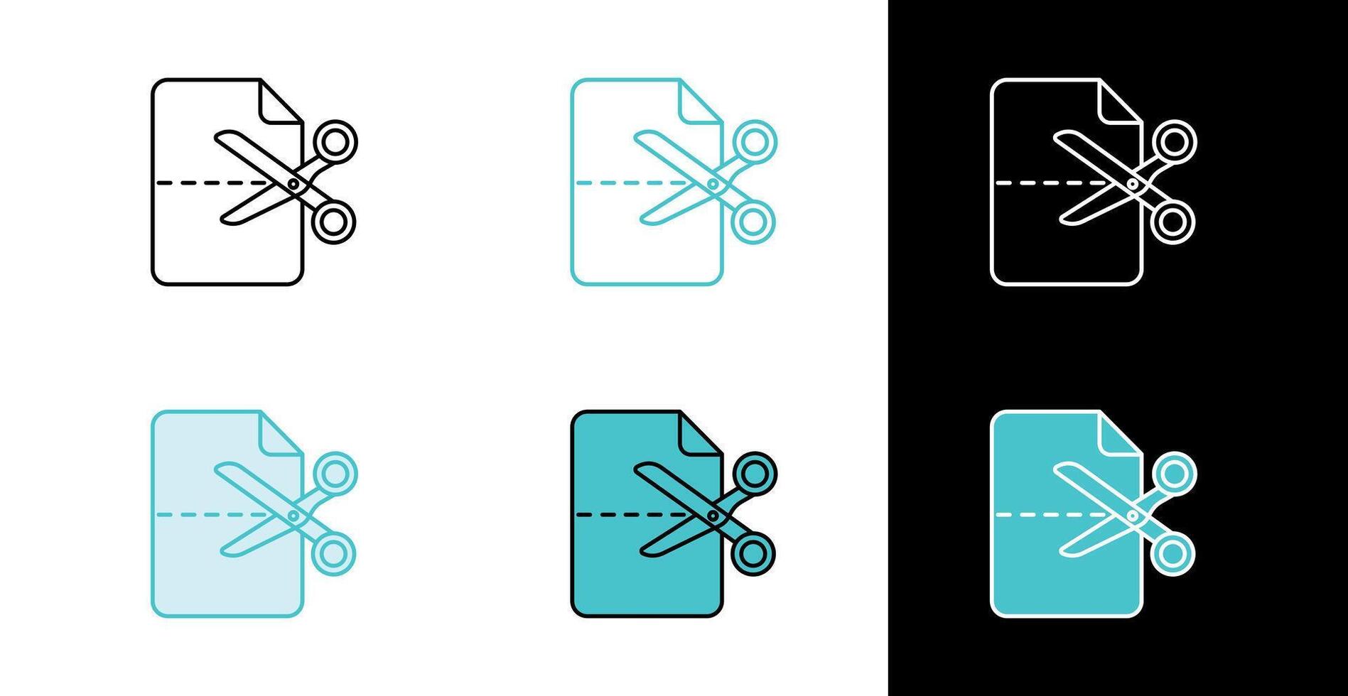 Scissors cutting paper icon for editing and document modification in line and fill style Pro Vector