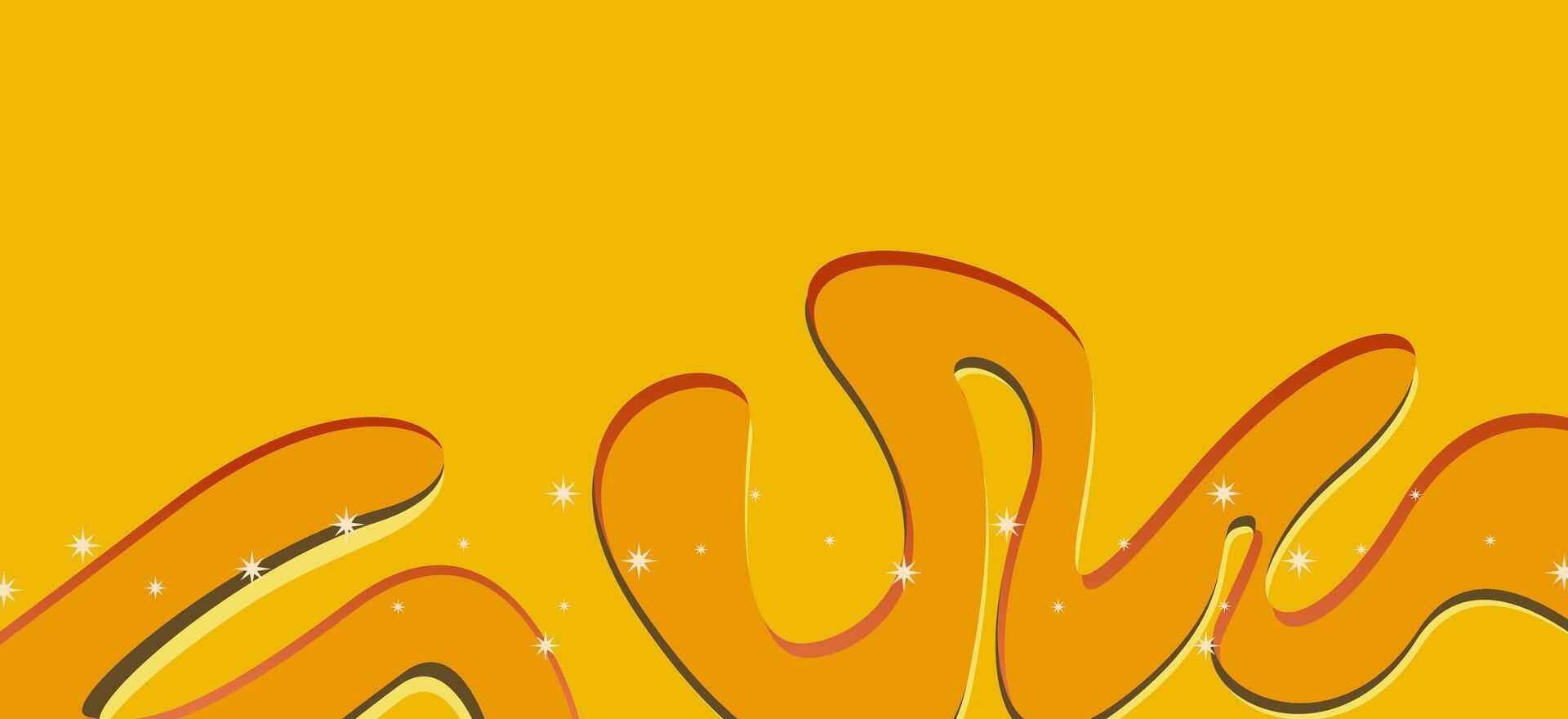 Retro Groovy Abstract Background with Orange Yellow Wavy Shapes and Sparkling Stars Pro Vector