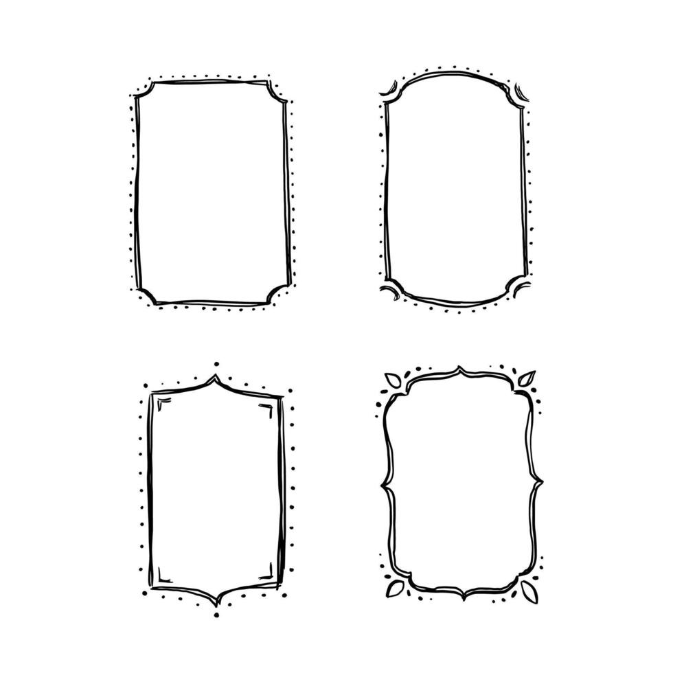 Four individual illustrations of frames and edges in a regal sketched style. Pro Vector
