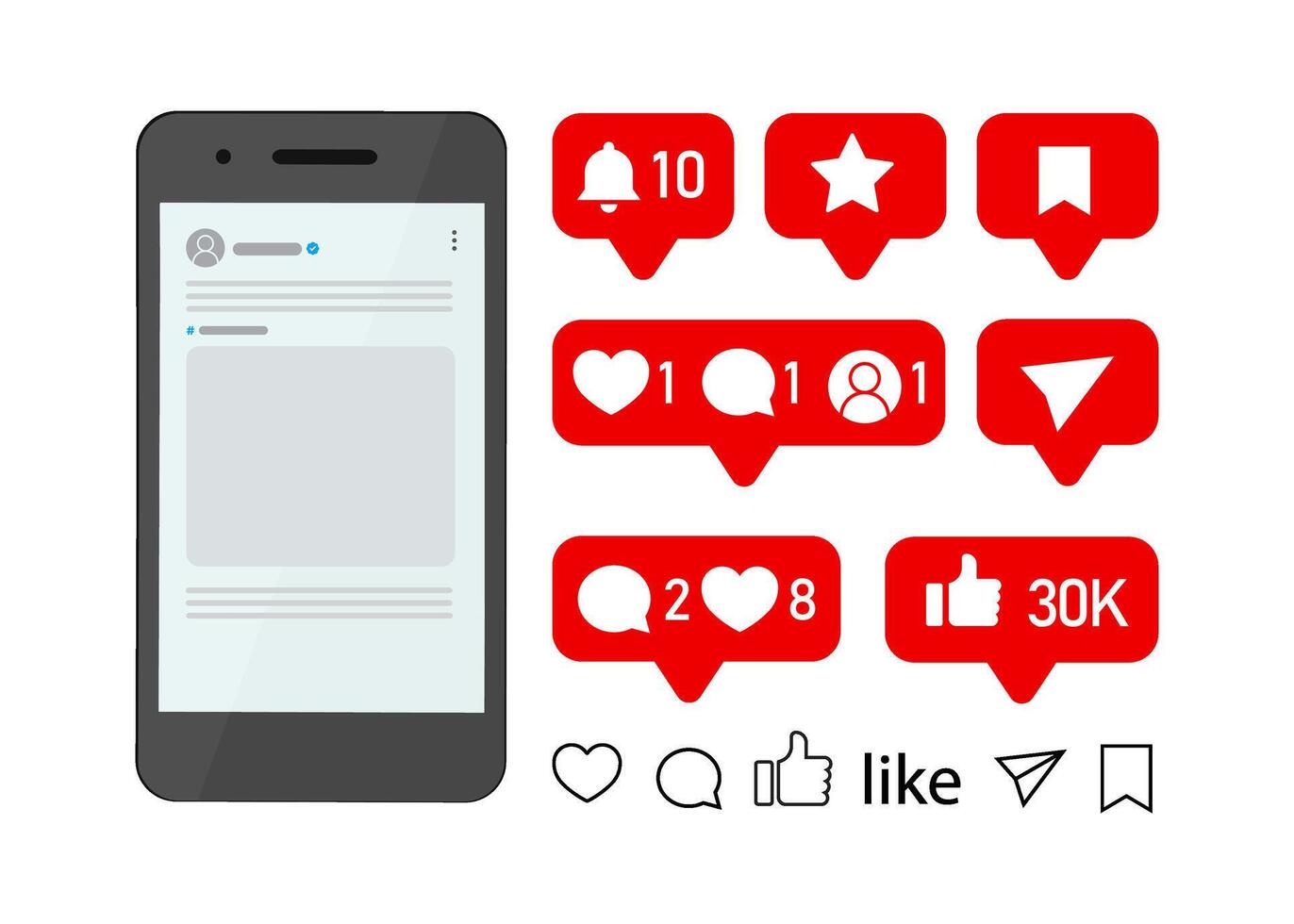 Social media smartphone mockup with notifications or social networking app icon. Pro Vector
