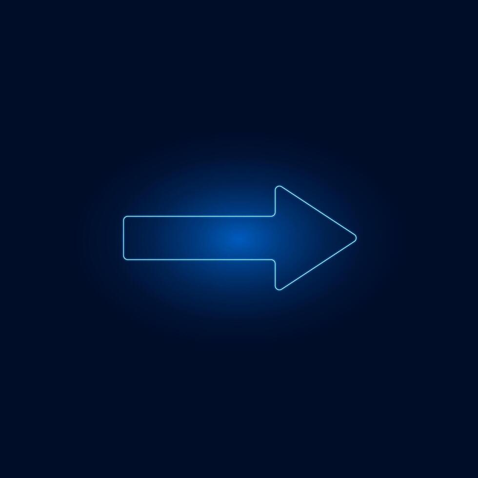 Glowing blue neon right arrow icon on dark navy background, minimal futuristic direction symbol for digital interface navigation design Pro Vector