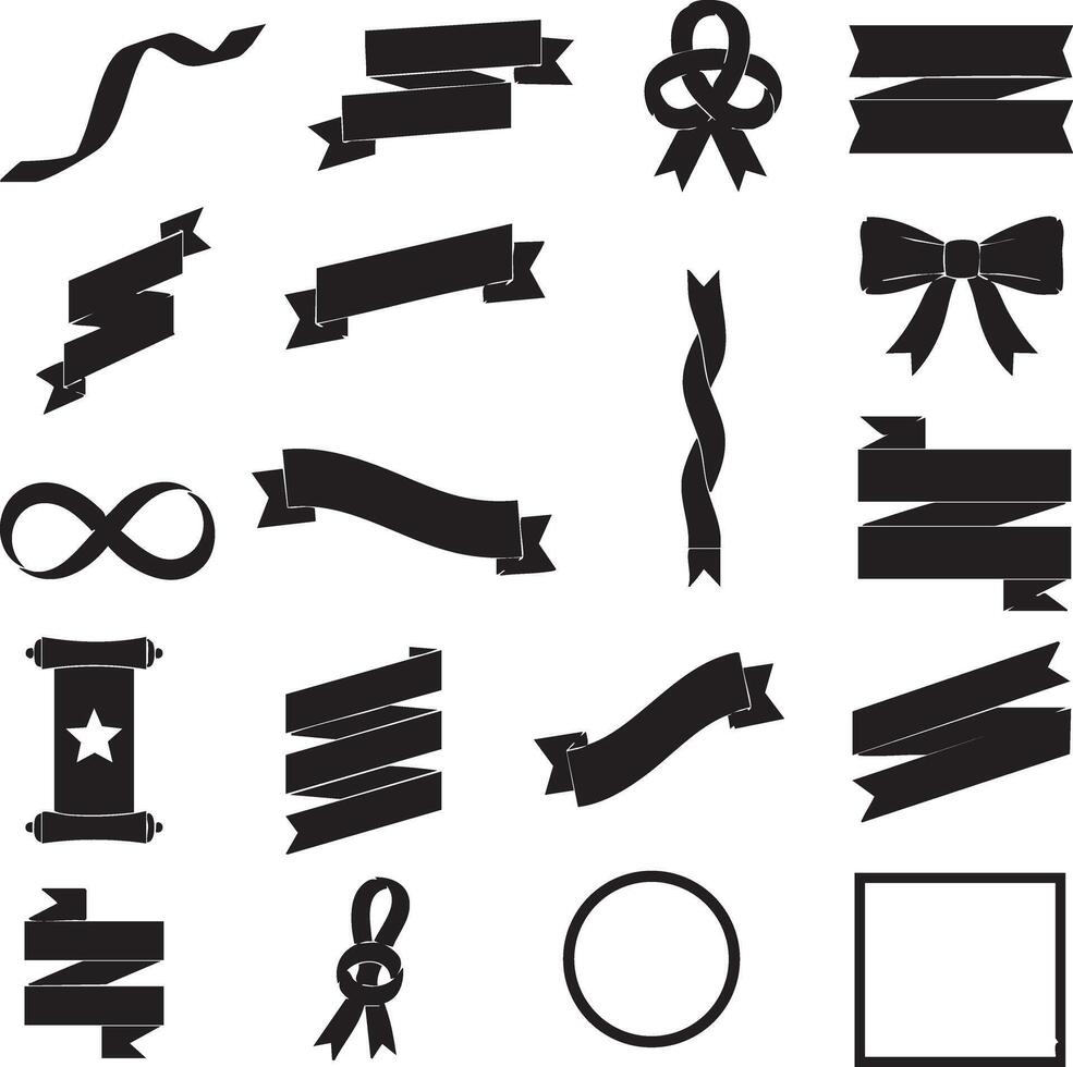 Unique Black Paper Ribbon Silhouettes Flowing S-Ribbon and Sharp V-Tail Folded Banner EPS File Pro Vector