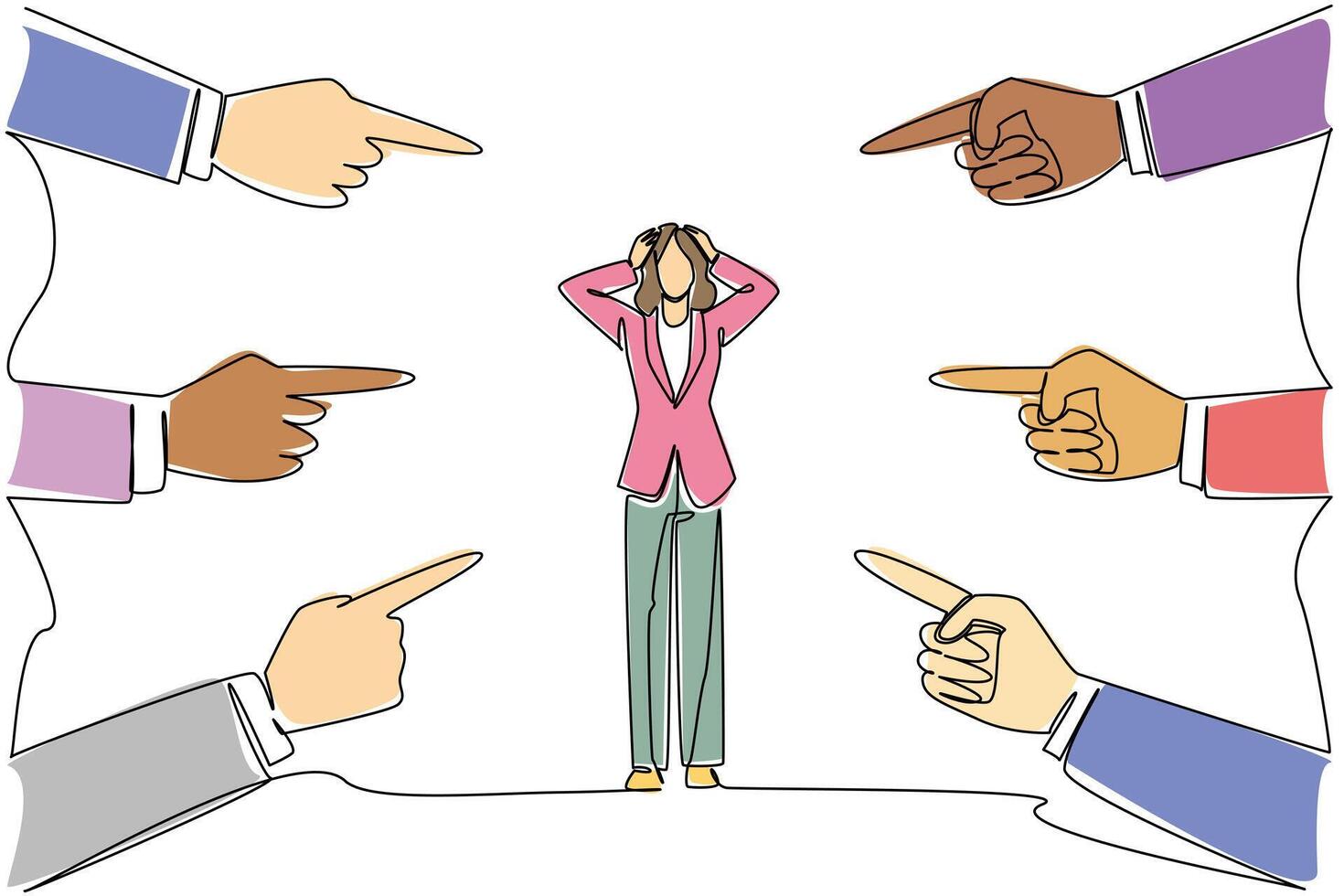Continuous line drawing of a man and woman in a conflict where she is pointing an accusing finger at him for social concept. This relationship blame theme is related to National Blame Someone Else Day Pro Vector