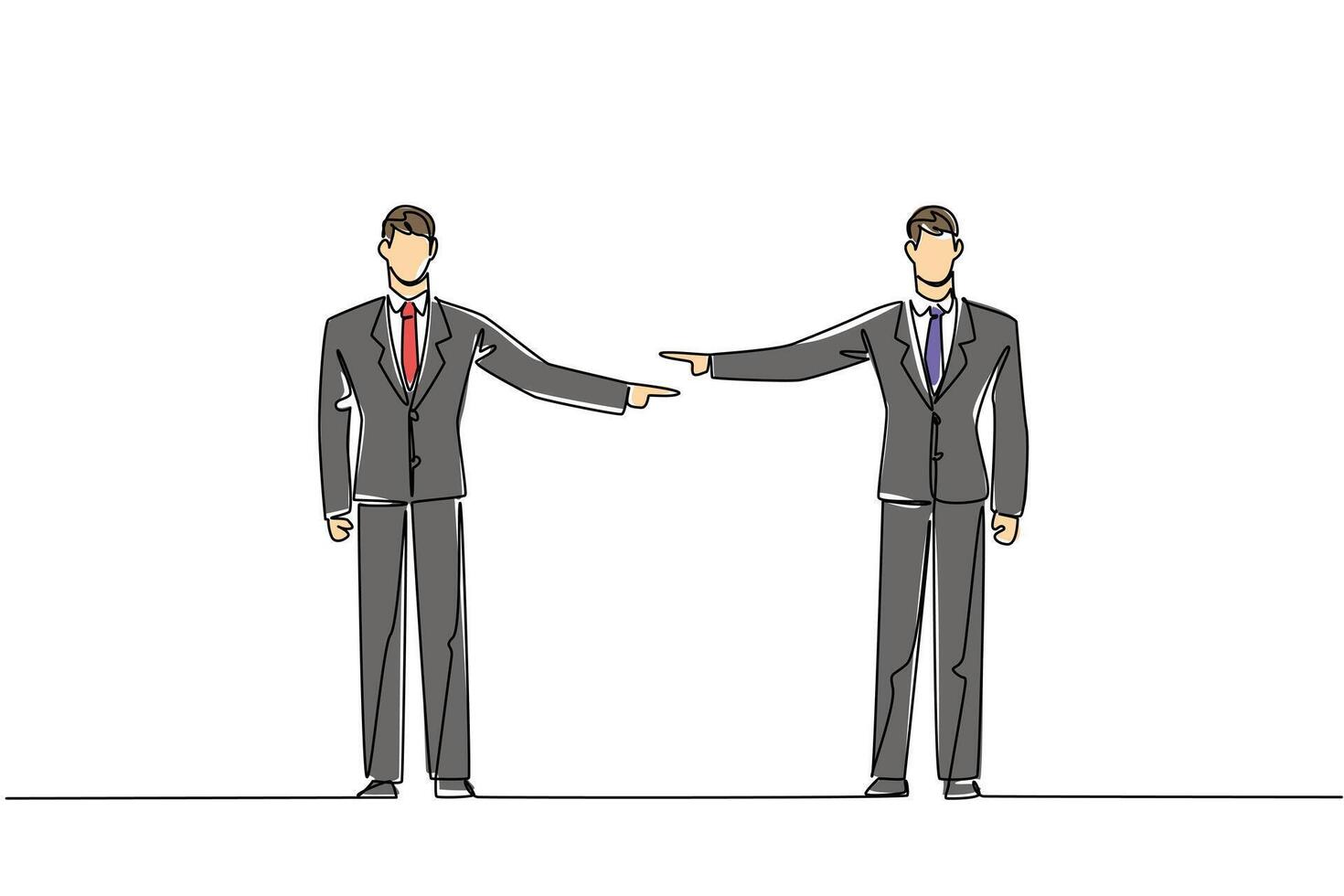 Continuous line drawing of a confused person being blamed by multiple pointing fingers for social concept. This overwhelmed accusation theme is related to National Blame Someone Else Day event. Pro Vector