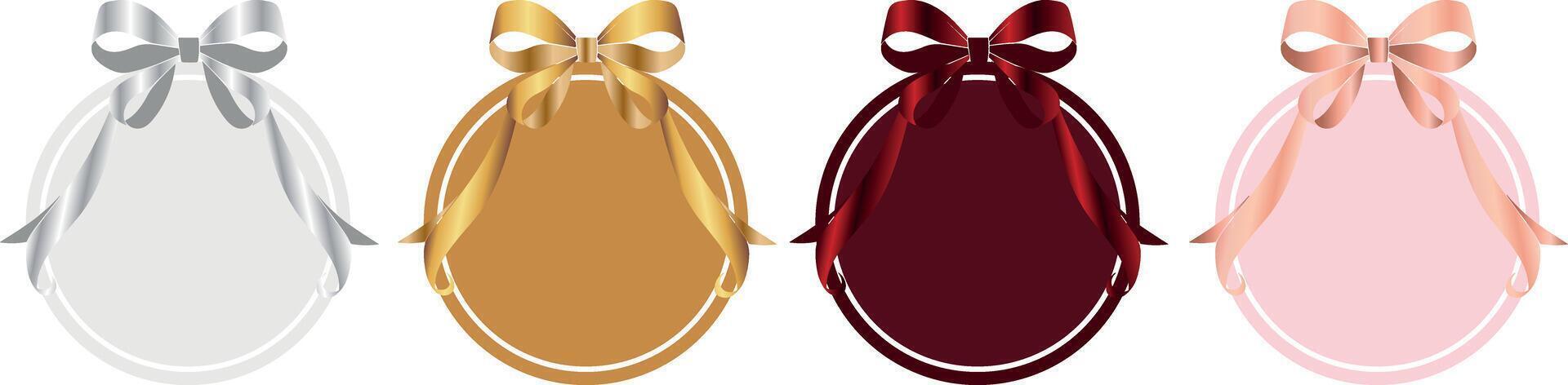 set of templates of simple round frames without text with bows with different gradients on top, for holiday designs, awards or printing Pro Vector