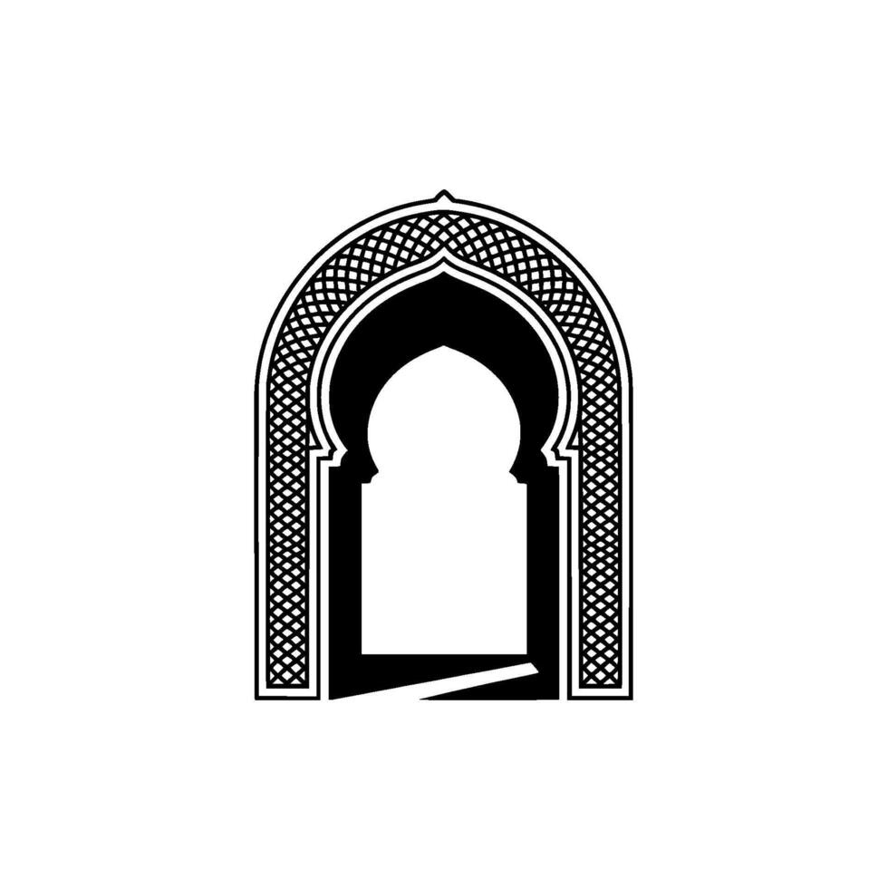 A minimalist of an Islamic pointed archway with intricate geometric patterns forming an entryway silhouette Pro Vector