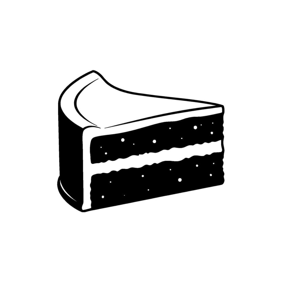 A simple line art illustration of a single slice of layered chocolate cake with frosting isolated vector