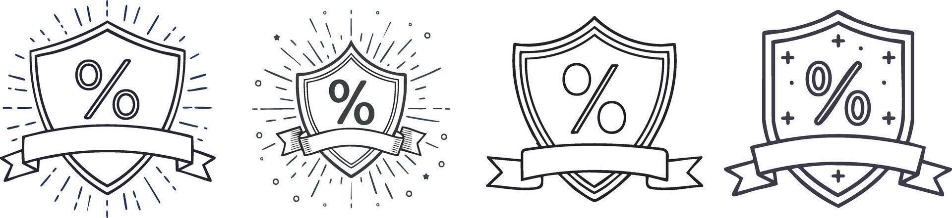 Shield badge with ribbon banner symbol rendered in clean thin outline for promotion and branding themed graphics Pro Vector