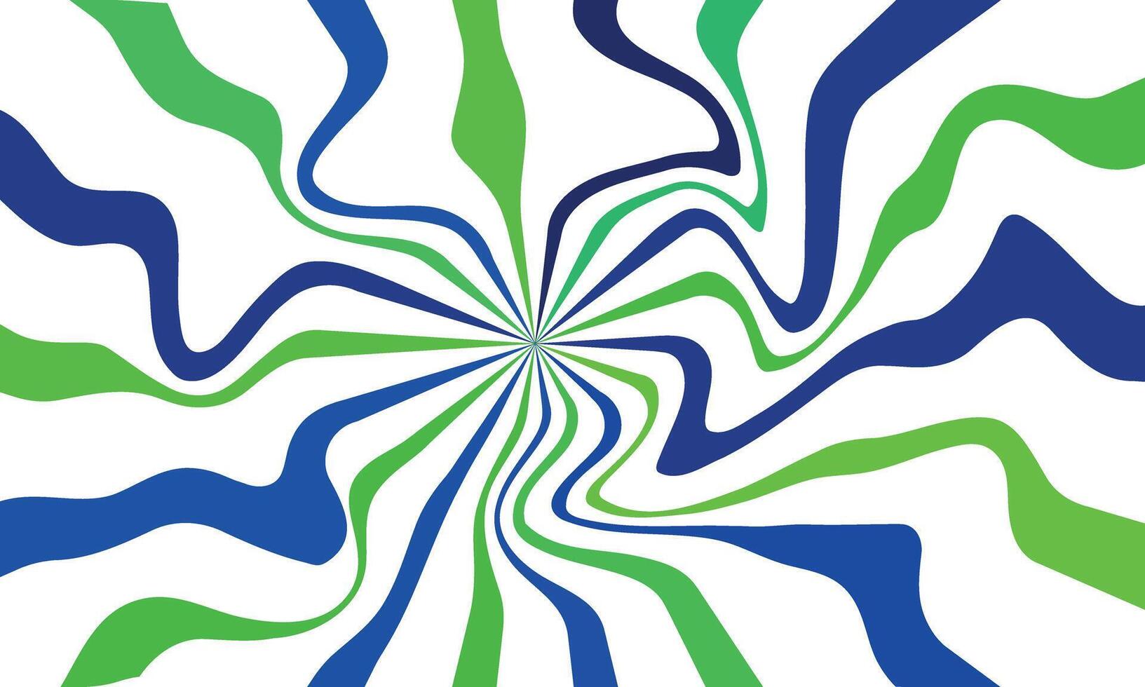 Vibrant abstract psychedelic blue and green wavy radial pattern design on a crisp white background creating a dynamic optical illusion Pro Vector