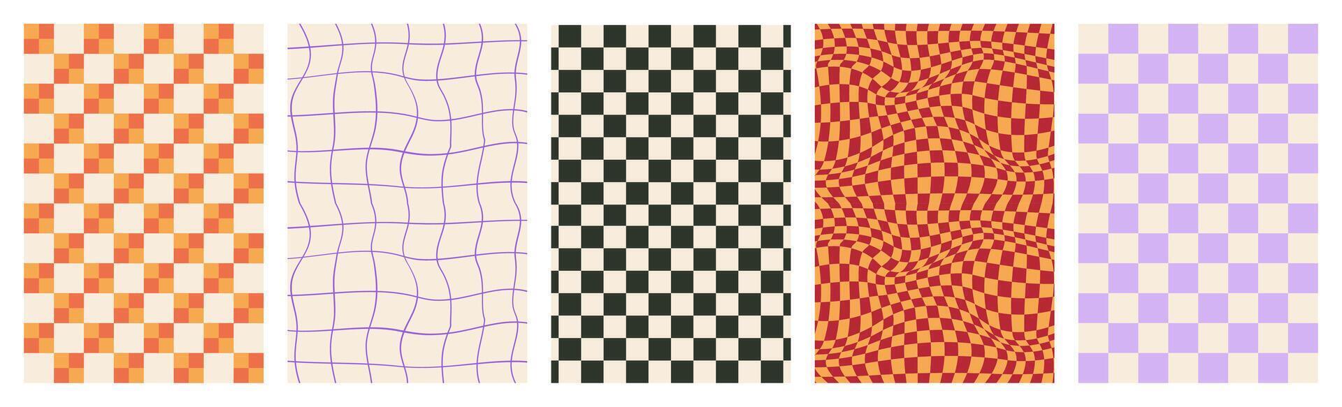 Set of Y2K funky retro groovy simple checkered background. Retro pattern with a groovy checkerboard design. Pro Vector