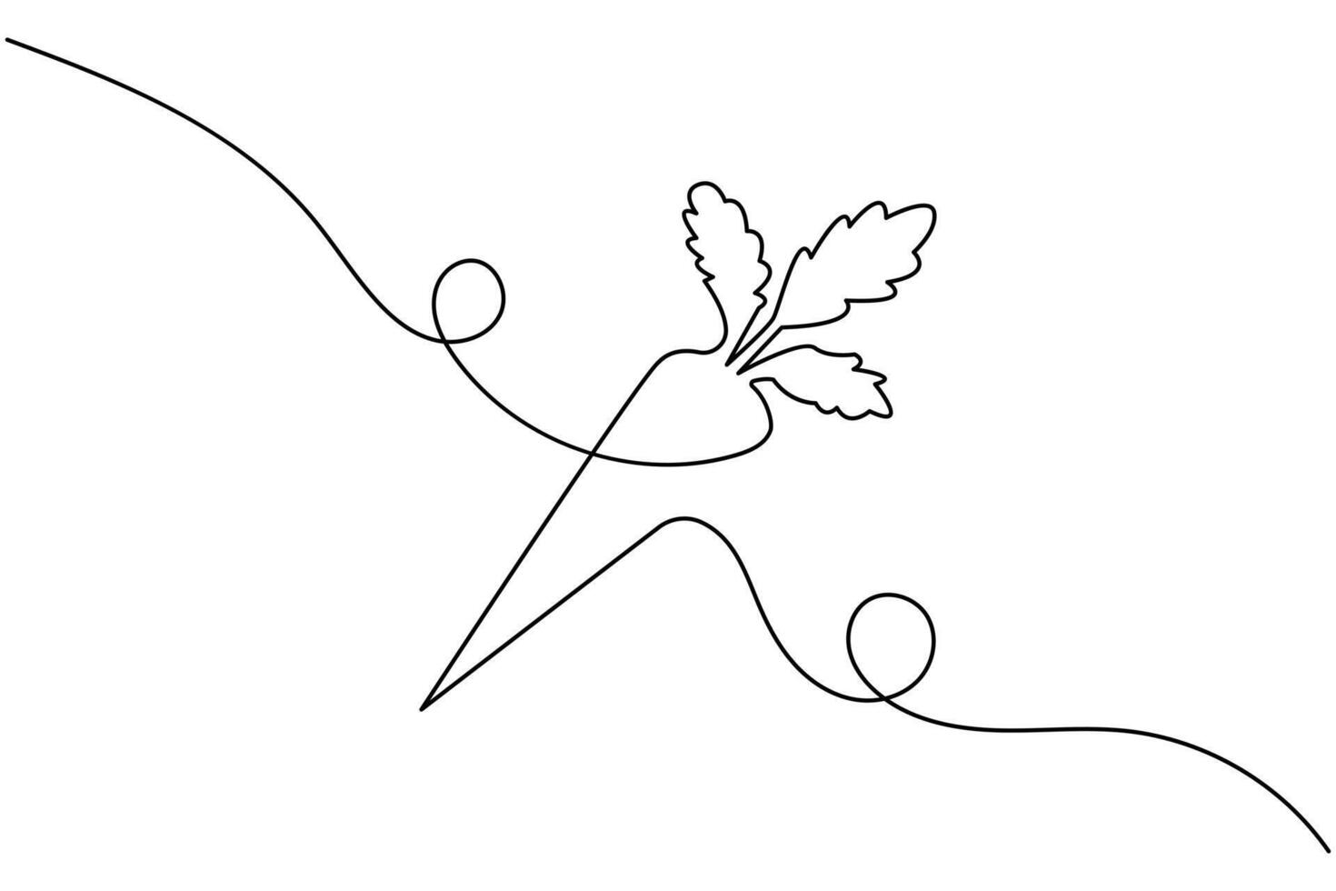 Single line illustration of a carrot with segmented root on white Pro Vector