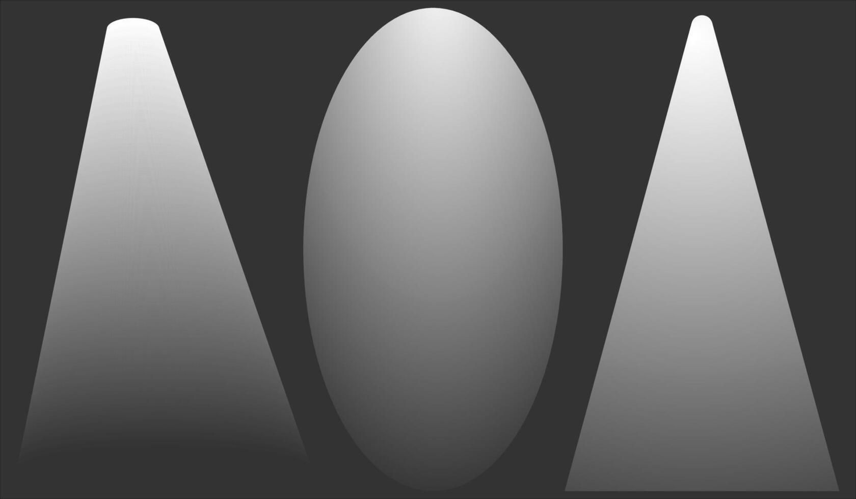 Soft Spotlight Beam Gradient Set with Smooth Oval Glow and Studio Light Cone Shapes on Dark Background Minimal Abstract Illustration Pro Vector