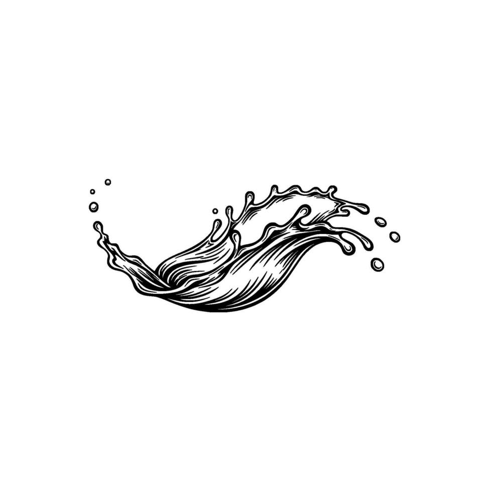 A dynamic hand drawn ink illustration of a liquid splash with artistic linework and small droplets originating from a wave like motion Pro Vector