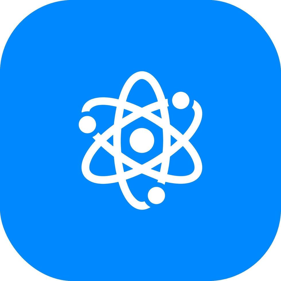 Flat Design Atom Structure Model on Rounded Blue Square Icon Pro Vector