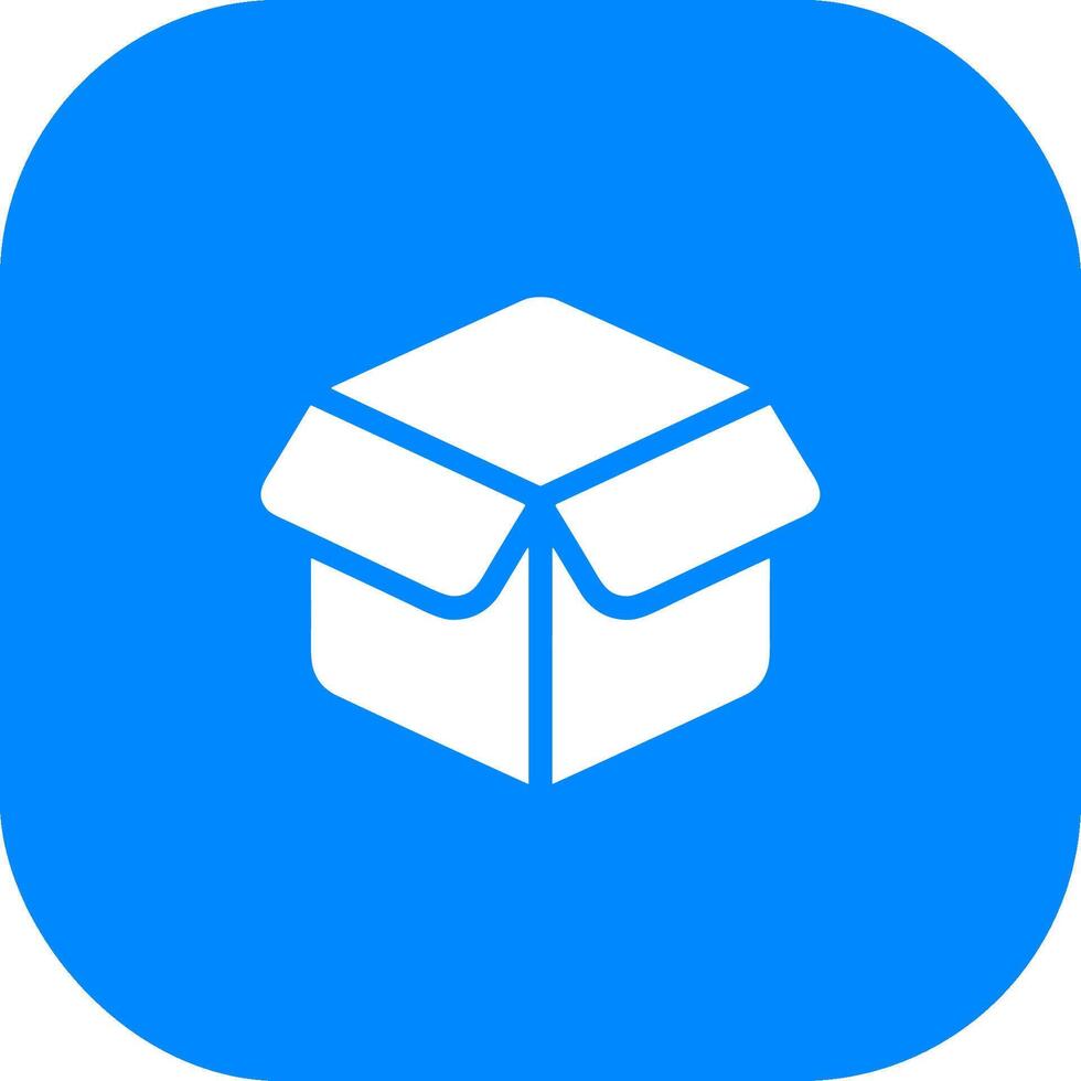 Simple Flat Open Box Icon on Rounded Blue Square Shape Pro Vector