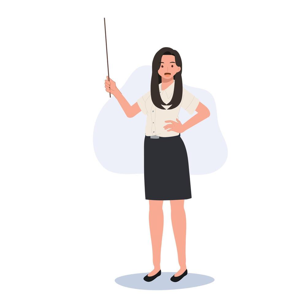 Thai University Student in Uniform Giving Lecture with Pointer. Pro Vector